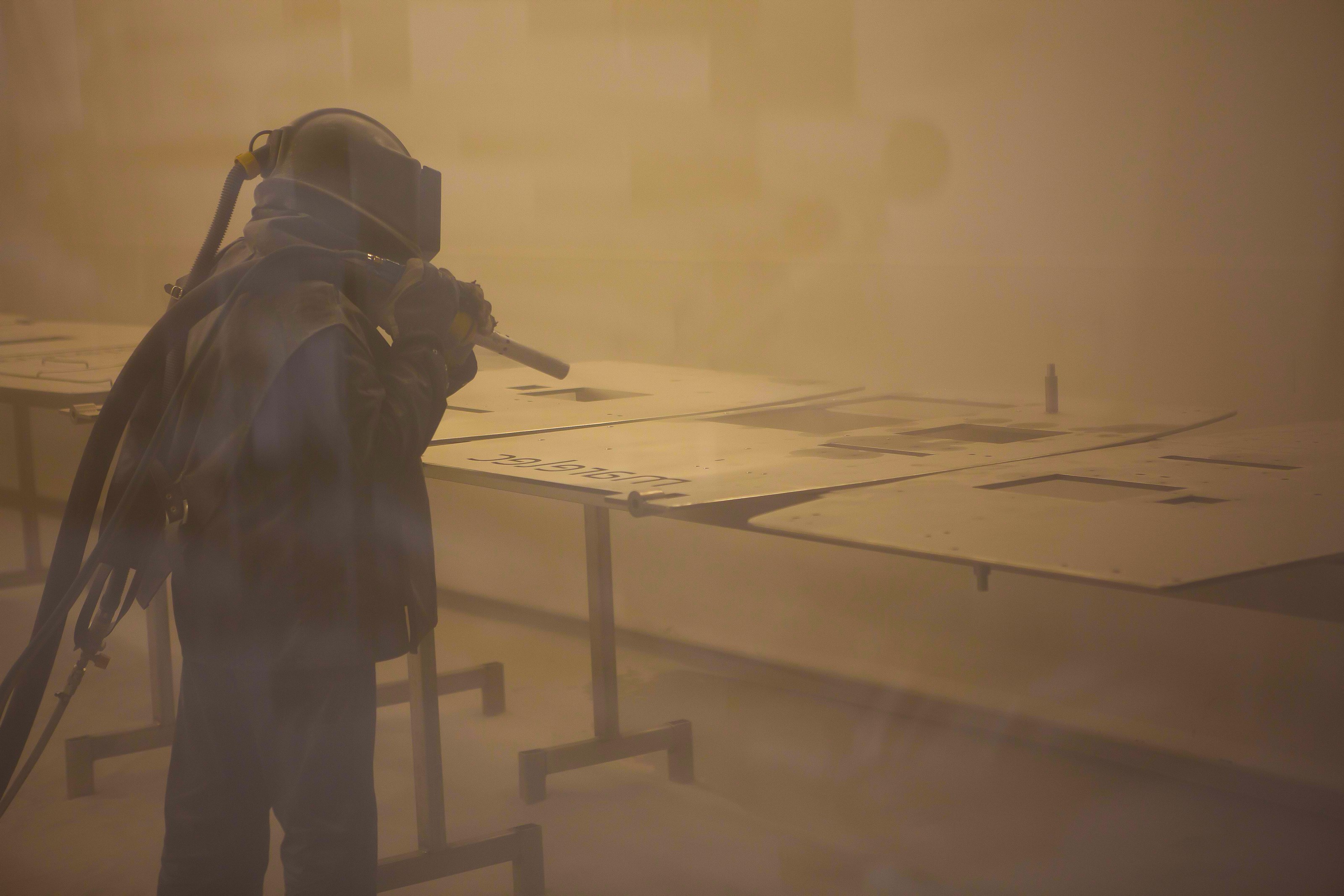 Onze parelstraalcabine heeft een maximale capaciteit van 6m x 17m x 5m (b x l x h) en beschikt over een automatische deeltjesafscheider en parelrecuperatie.